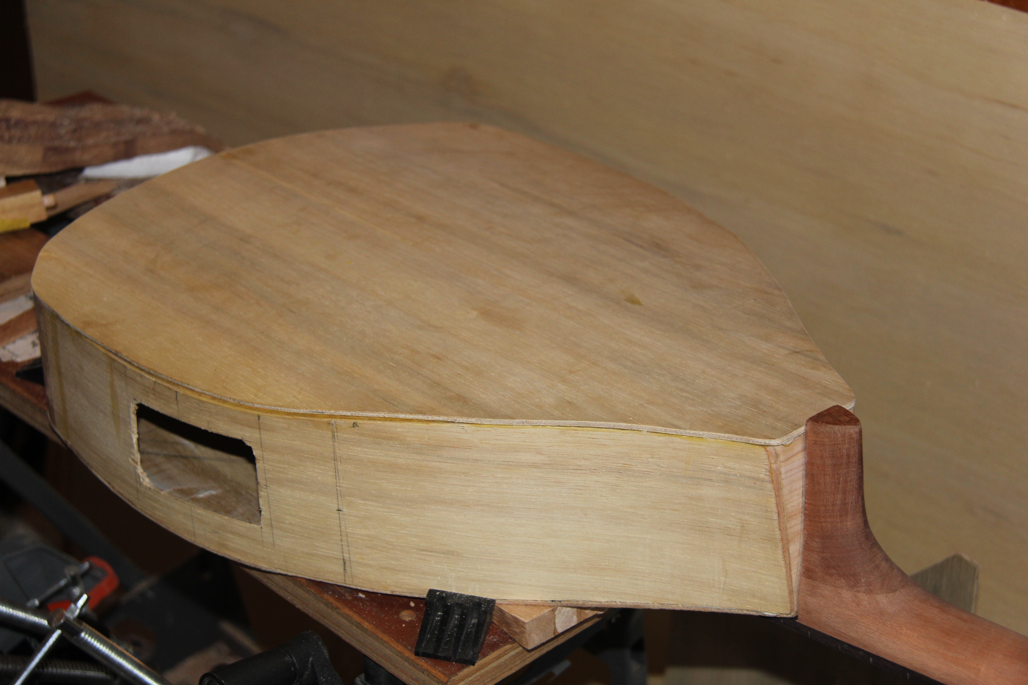 Previous page of the Mandocello build - Next page of the Mandocello build - Index of the Mandocello buildI think this is showing the lining before it is shaped (left) and after (left). It is hard to see, but the second picture the lining slopes inward and you can see the slots.